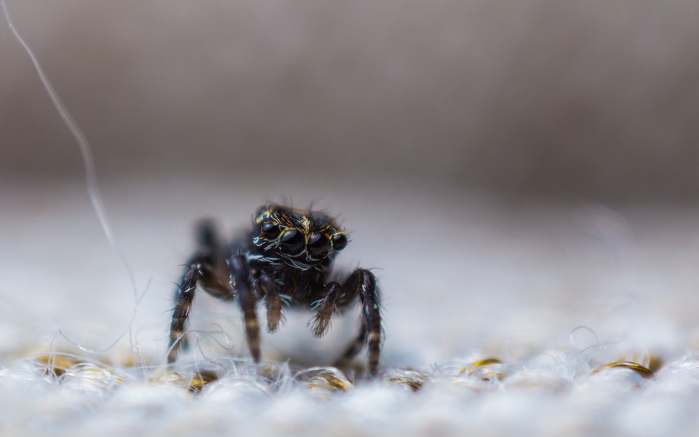 Sofa Spider (2 mm long). Around 2mm long Jump spider that I found and photographed on a sofa cushion for garden furniture. Lens reversed Rodenstock Rogon-S 25mm enlarger.