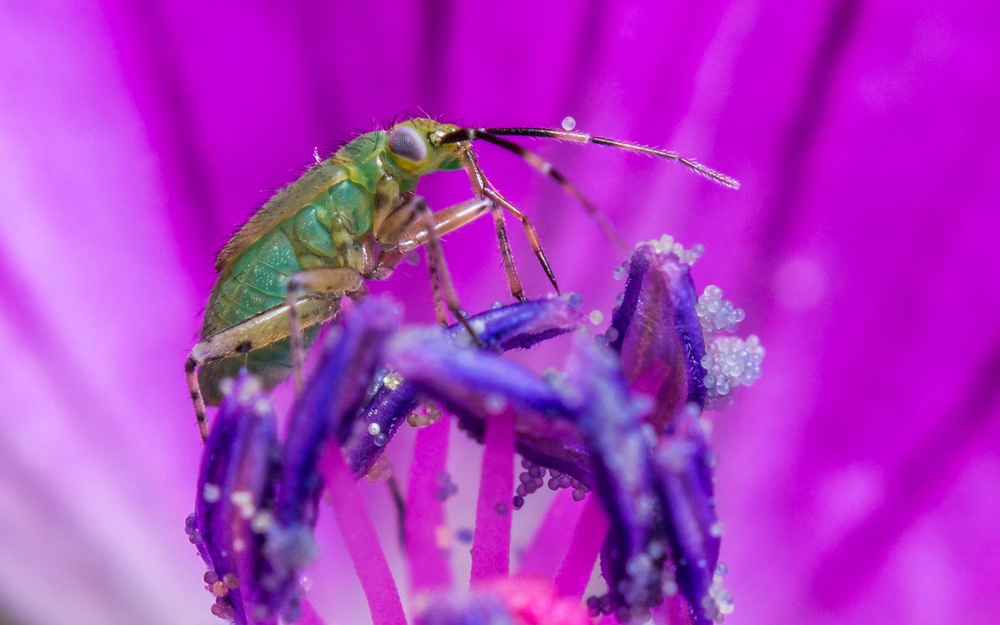 Bug (Heteroptera) on flower. Objective: EL Nikor 50mm F2.8 Reversed with intermediate rings.