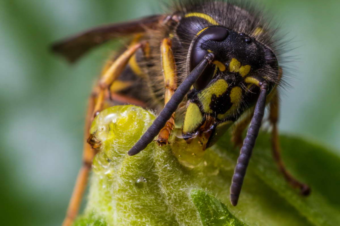 Wasps. Two pictures of wasp, included Focal Length 55 mm to minimize magnification. Photographed with Canon 60D and putty lens Canon EF-S 18-55mm on F13