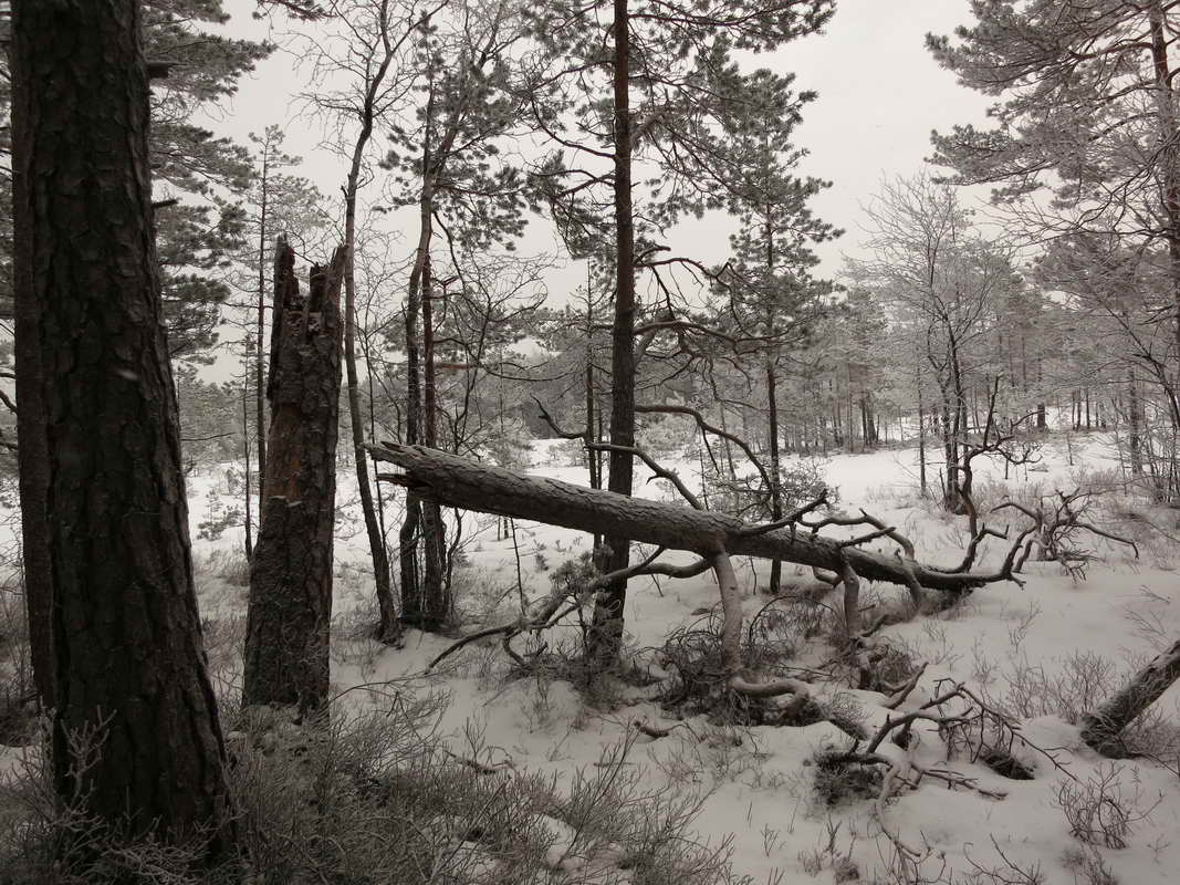 I'm on Tomåsan January 14. Here's an old pine tree that has broken.