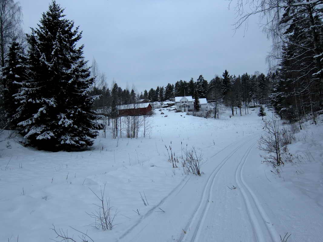 Here I go skiing on February 11. I stood looking at the two deer up by Jonserud farm.