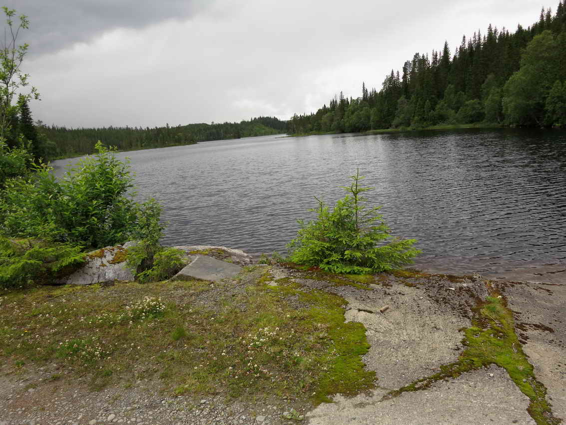 Here I am finally down by Flaksjøen and the road. I choose to go the way forward.