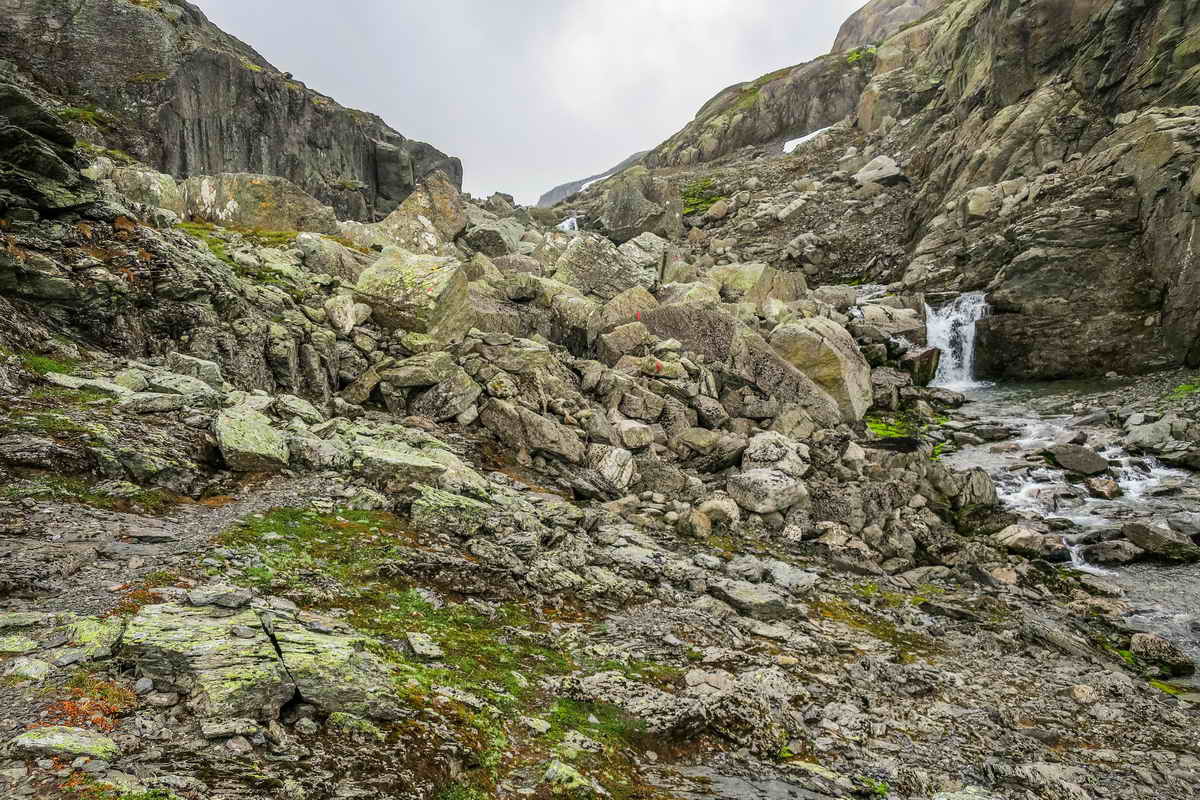 Looking back on the rocky hill. One sees that the red mark goes straight through.