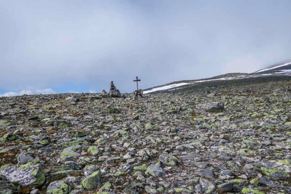 The path separates Åmotsdalen, Snøhetta and Snøheim.